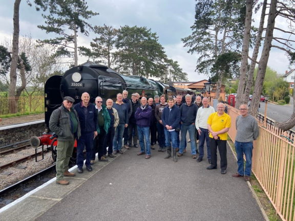 We hosted the AGM of the Bulleid Pacific Locomotive Association at Toddington and arranged for the attendees to have a trip behind the loco from Toddington to Broadway and return. Below is a photo by Ian Crowder of them by the loco at Broadway.